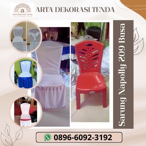 Sarung kursi Napolly 209 dengan busa, memberikan tampilan lebih tebal, rapi, dan nyaman. Cocok untuk dekorasi pesta, hajatan, dan acara resmi.