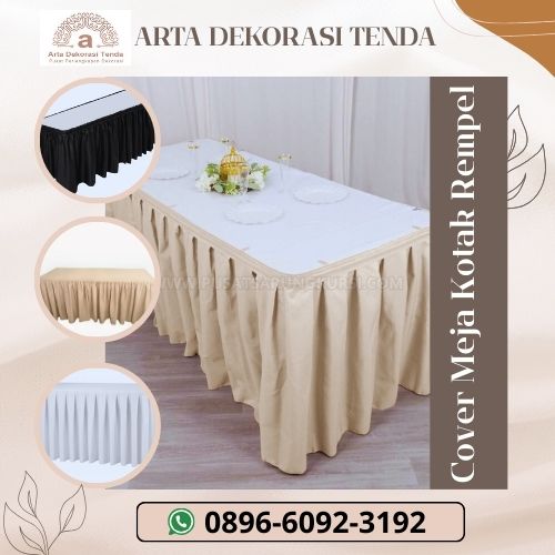 Cover meja kotak rempel ini terbuat dari bahan stretch berkualitas, memberikan tampilan rapi dan elegan. Sempurna untuk dekorasi acara formal dan pesta, tersedia dalam berbagai warna menarik!