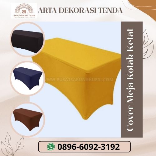 Cover meja kotak ketat ini menggunakan bahan stretch berkualitas yang memberikan tampilan rapi dan elegan. Cocok untuk dekorasi acara formal dan pesta, tersedia dalam berbagai warna menarik!