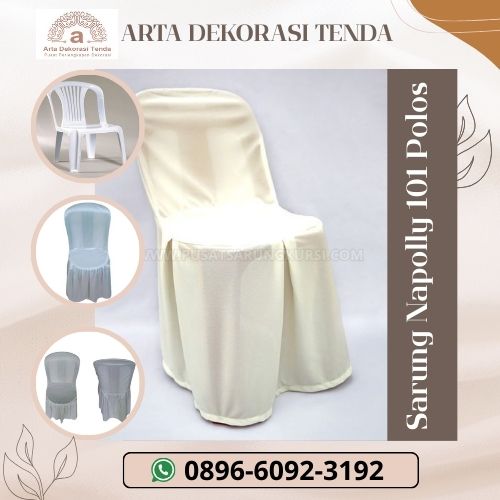 Sarung kursi Napolly 101 polos, bahan rapi dan lentur, pas untuk mempercantik tampilan kursi di acara pesta, hajatan, atau event formal. Terlihat simpel & elegant.